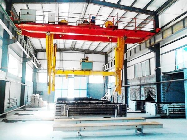 加氣混凝土起重機(jī)是專門用來吊運(yùn)混凝土模具和坯體的專用起重機(jī),由箱形橋架、大車運(yùn)行機(jī)構(gòu)、起升機(jī)構(gòu)及電氣設(shè)備四部分組成,配合專用吊具,完成模具的翻轉(zhuǎn)、開模和脫模等工作。